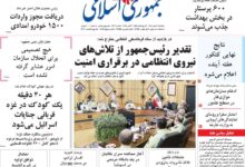 تقدیر پزشکیان از پلیس، اظهارات ظریف در باره آمریکا و… از تیترهای مطبوعات امروز است. منبع