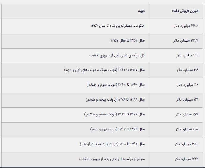 جدول درآمد ایران از فروش نفت در دورههای مختلف را مشاهده میکنید.