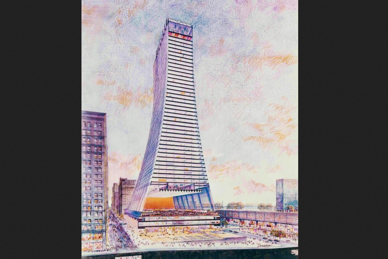 در همین راستا یانگ معماری به نام I.M. Pei آشنا شد و این معمار توانا، طرح Hyperboloid را به او پیشنهاد کرد: یک برج اداری با ارتفاع ۴۵۵ متر و ۱۰۸ طبقه که با هزینهای در حدود ۱۰۰ میلیون دلار، بلندترین و پرهزینهترین سازه جهان در آن دوره بود که ۶۰ متر از ساختمان امپایر استیت بلندتر بود.