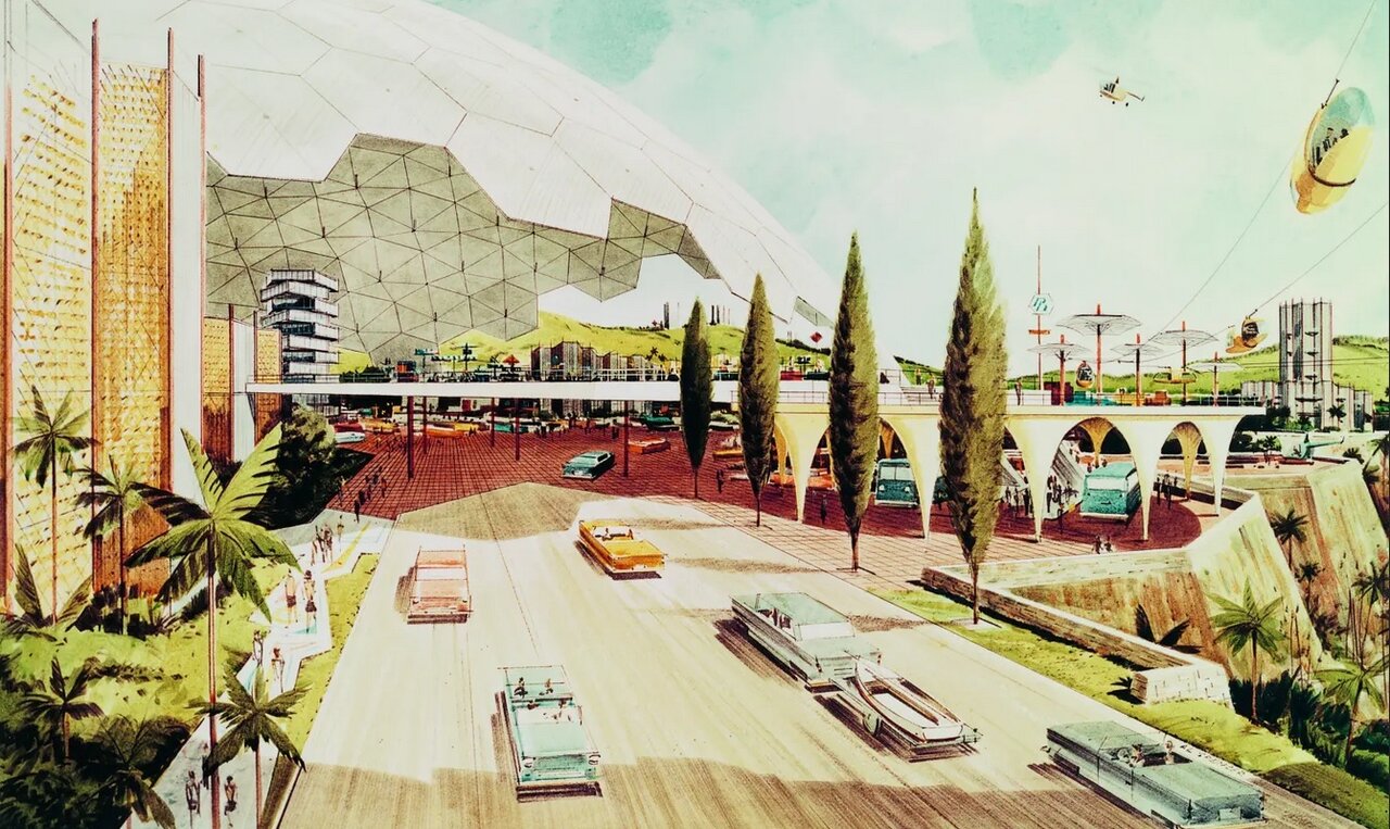 اسمیت و ویلیامز شهری را برای آدیر طراحی کردند که همهچیزتمام بود: با یک گنبد ژئودزیکی، یک ترن هوایی و نسخهای مدرنیستی از یک قلعه.