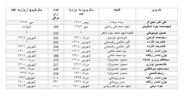 جدول زیر دربردارنده نام وزرای نفت ایران پس از پیروزی انقلاب اسلامی است.