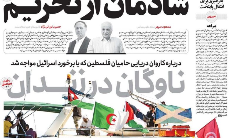 محدود کردن کاروان کمک رسانی به غزه توسط اسرائیل، .اکنش به اظهارات جدید پزشکیان در باره انتقال پایتخت و… از تیترهای مطبوعات امروز است.