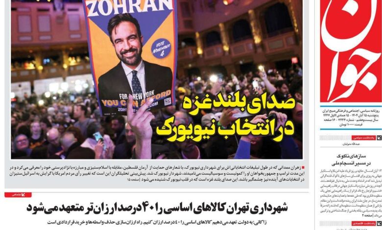 پیروزی زهران ممدانی در انتخابات شهرداری نیویورک و زمزمه های افزایش قیمت بنزین از تیترهای مطبوعات امروز است.