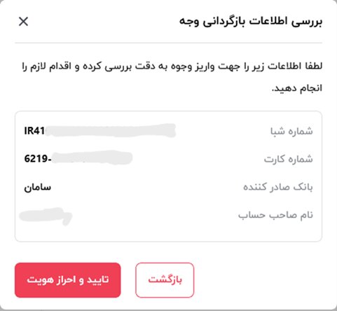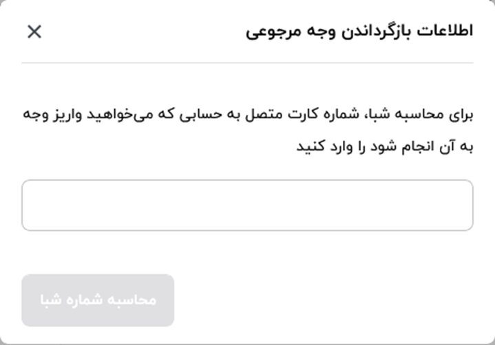 بعد از این که فیلدهای «نام و نام خانوادگی»، «کد ملی»، «شماره موبایل»، «ایمیل» را پر کردید، سری به فیلد «روش بازگرداندن پول من» بزنید و روی آن کلیک کنید تا این صفحه برایتان باز شود: